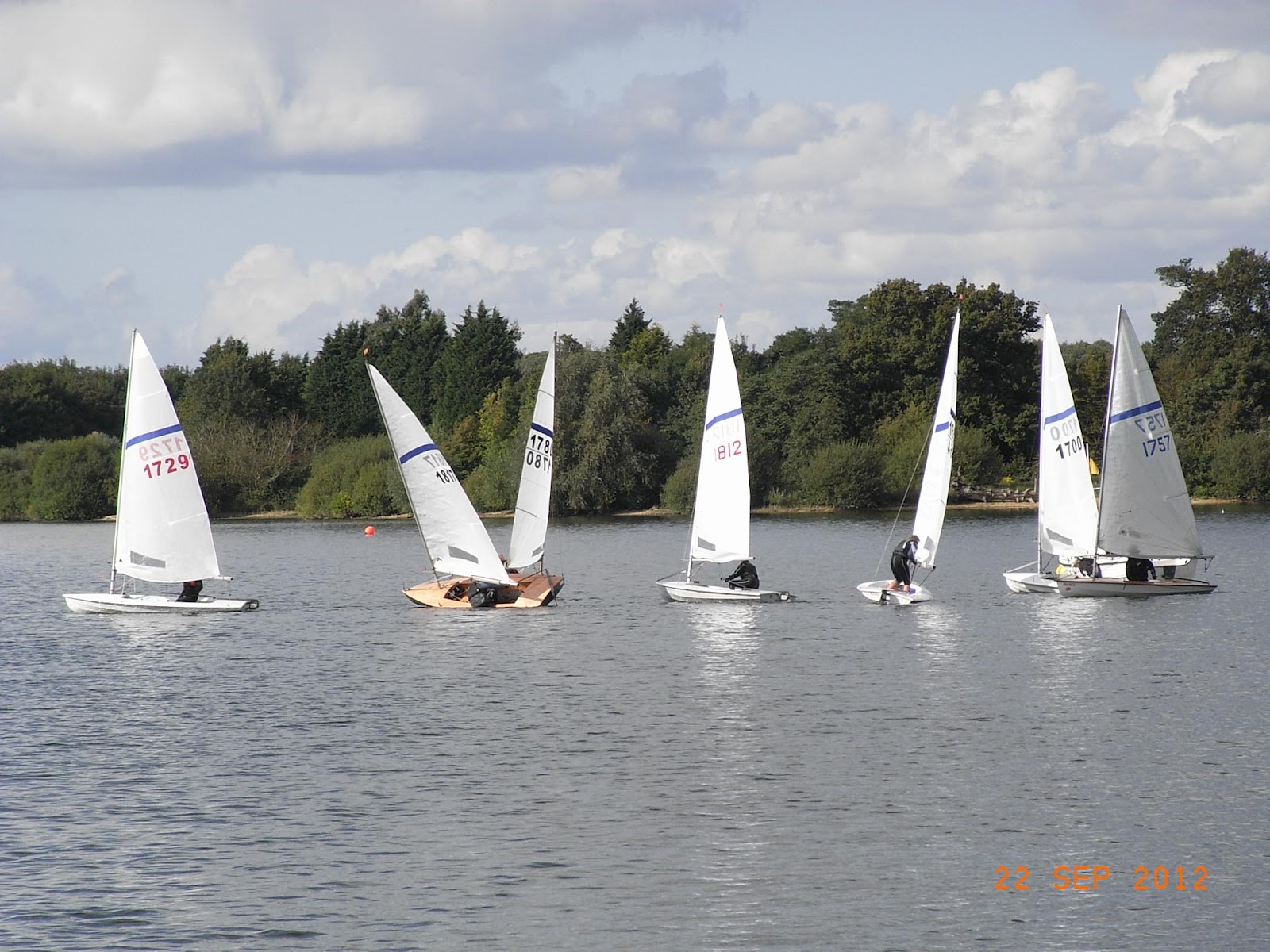 is Chew Valley) whilst Alan Simmons had only come up from Hove in East Sussex.The course was laid with an initial beat, from the Committee Boat moored just off the clubhouse, to a mark on the north shore. The following leg was a broad reach across to the south shore and the another beat to the north west. After that the next leg was a long run to the east and a turning mark on the club side just north of the launching area before heading back through the gate at the Committee Boat.