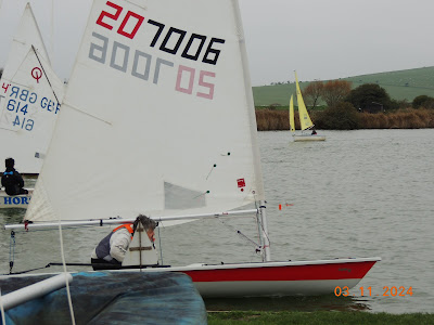 Approaching the finish mark Ed.T was in the lead crossing the line 8 seconds ahead of Rupert with Alan 13 seconds later. Mark crossed the line in fourth place 9 seconds later with Zoe 10 seconds after. Michael Veale and Mike Rosier (RS 200) were 6th, Springall (Laser Radial) 7th, Julian Dobson (Laser full Rig) 8th, David Hitchens (Laser Radial) 9th, Ewan Hamilton (Laser 4.7) 10th, Sean Beevers (Laser Radial) 11th, Bill Wates (Laser Radial) 12th, Dave Parkins (Laser Radial) 13th, Jon Pickup (Laser full Rig) 14th , Harvey Pickup (Topper) 15th, Andy Hamilton (Laser full rig) 16th and Red Sheridan (Oppy) 17th.